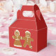 Gingerbread with white frosting cookie man and woman couple hold hands for the Christmas holiday. Get this cute couple to make your season bright with a traditional Christmas image on a bright cheery red background.