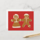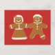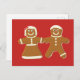 Gingerbread with white frosting cookie man and woman couple hold hands for the Christmas holiday. Get this cute couple to make your season bright with a traditional Christmas image on a bright cheery red background.