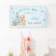 A little man is on the way! Christmas boy baby shower banner with an adorable gingerbread man, Christmas tree, gift and snowflakes all in baby blue and beige. Easily personalise the text.