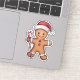 A gingerbread man wearing a Santa hat and holding a candy cane.