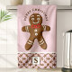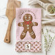 Gingerbread Man Pink Monogram Merry Christmas Tea Towel