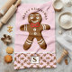 Celebrate the holiday season with this custom gingerbread man Merry Christmas kitchen towel. Featuring a cute gingerbread man with a red bow tie, a festive "Merry Christmas" greeting, and a personalised monogram on a pink background, this towel adds a fun and festive touch to your kitchen decor. Perfect for gifting or adding a personalised touch to your holiday home.