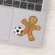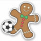 An illustration of a happy gingerbread man with a green bow tie playing soccer or football and trying to make a goal. Let's enjoy this Christmas season with good food, gift giving and spending time with family and friends. This design is a combination of sport and Christmas.