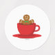 A gingerbread man relaxing in a hot chocolate red cup. Ideal for hot chocolate, coffee and tea addicts.