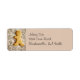 Have special labels for the holidays with this sugar cookie gingerbread man with a bite take out of him on a gold damask cloth.