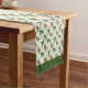 Gingerbread men and holly pattern on festive table runner with green trimming.