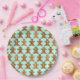 Festively decorated gingerbread men create a sweet pattern for a Christmas party. Shown here on a paper party plate with a changeable mint green background colour. You can choose your favourite colour and adjust the size of the pattern. These gingerbread men would be great for any holiday party or cookie swap!