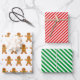 Gingerbread Men & Green and Red Striped Christmas Wrapping Paper Sheet