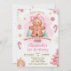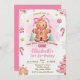 Cute pink gingerbread birthday invitation for girls, cute gingerbread cookie winter invite.