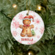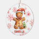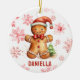Celebrate the season with this adorable personalised gingerbread ornament! Featuring a cheerful gingerbread man in a Santa hat with pink snowflakes and a festive evergreen tree, this ceramic keepsake includes your child’s name printed boldly below. A perfect addition to any Christmas tree, this ornament is ideal for kids, grandkids, or baby's first Christmas. Also makes a sweet gift tag, stocking stuffer, or collectable holiday treasure they’ll love hanging year after year.