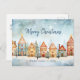 A charming row of little gingerbread houses brings a smile to one's face. This cheerful watercolor picture is of vintage origin. The snowy winter scene includes "Merry Christmas" in coordinating dark blue script that you can change. The back of this postcard has an additional optional paragraph plus "from" names. Be sure to edit the "from" names that are on the front and back and also the date. If you do not want any of this text, including what is on the back, just delete it.