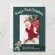 A photo baby’s first Christmas card. This cute holiday card includes a template for your baby’s photo, a smiling cartoon gingerbread man wearing a Santa outfit, your customised message, and a green and white colour scheme. Simply add your baby’s photo with a special message, add this card to you cart, and include all your loved ones in baby’s first Christmas.
