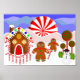 Adorable picture of a gingerbread scene, with two gingerbread men, a gingerbread house, candy canes, a snowman and a peppermint sun, are featured on this cute poster for the Holidays. Colourful poster will brighten any room and makes a great gift for a child too!