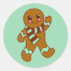 A gingerbread boy with, accents of mint and chocolate, is waving at you on this holiday sticker! The design is from original art.