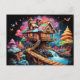 Gingerbread tree house pschedelic christmas holiday postcard