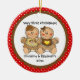 Twin's First Christmas Ornament features the cutest little pair of gingerbread twins, a girl and boy set on a red gingerbread man background! Personalise with your baby information and date and you're all set to go! Wonderful dated keepsake gift for your baby's 1st christmas.