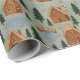 Cozy wrapping paper featuring a charming gingerbread village pattern with illustrated houses, fir trees, and soft winter details.