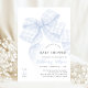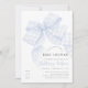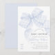 Celebrate the arrival of a sweet baby boy with the Gingham Blue Bow Baby Shower Invitation. This charming design features a delicate blush blue bow adorned with a gingham pattern, paired with elegant watercolor details for a perfect blend of preppy style and modern sophistication.