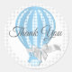 Blue gingham chequered pattern hot air balloon thank you sticker for baby boy. Add to favours and thank guests for attending.