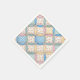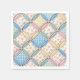 A seamless background featuring pastel gingham patterns and floral prints in a cathedral window quilt design