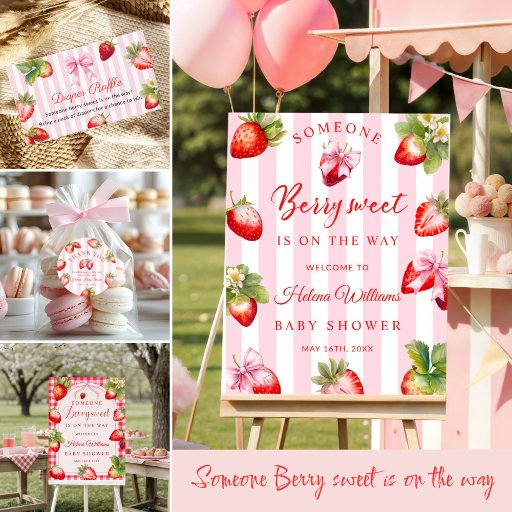 Perfect for moms-to-be who adore vintage details, strawberries, and feminine baby shower decor, this invitation pairs beautifully with coordinating signs, favors, and decorations for a cohesive berry-sweet celebration.