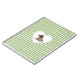A cute country style pattern with a picture of a quilted brown gingham dog in the middle of a white heart stitched onto a sage green gingham background.