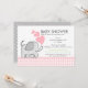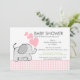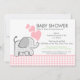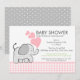 Sweet elephant baby shower invitation with a grey gingham check pattern and pink hearts. Change background colour to change base pattern colour if preferred.