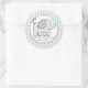 Elephant with adorable grey gingham chequered pattern and polka dot ears and mint green hearts new baby stickers perfect for a neutral baby shower. Add to favours and thank guests for attending.