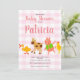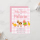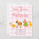 A pink gingham pattern is the background for is Farm Animal Baby Girl Shower Invitation. Soft pink pastel colours with cute little farm animals with make this invitation a one of a kind.