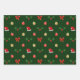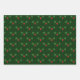 Here we have a lovely wrapping paper sheet set perfect for the holiday season. The first sheet features holly berries and snow flurries on a green gingham background. The second sheet features a design of ornaments, holly berries, red bows and Santa's hat, with snow flurries on a green gingham background. The third sheet in the set features a Christmas design with ornaments and the words "Feliz Navidad" with snow flurries on a green gingham background.