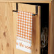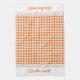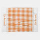 Gingham check pattern in tango orange. Two white end stripes are capped in faux simulated lace print in this rustic design, can be personalized with your name or message in matching script font.