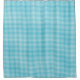 Gingham-patterned shower curtain in teal and white