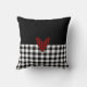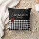 Ms. Monogram's gingham pillow design features your family name popular black and white buffalo check pattern set on a black background.  The accents are red and black buffalo plaid. The bottom half of the pillow feature matching black and white buffalo check / gingham pattern and the top half is black.  With all that red and green around the house at the holidays, surely this black and white pillow will stand out!  #BuffaloPlaid #Gingham #BuffaloCheck