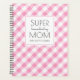 This modern, trendy planner contains text reading, "Super Homeschooling Mum." The background contains a simple plaid pattern in pink and white. A text template is included for personalisation, making this a perfect gift! Great for someone who needs to stay organised!