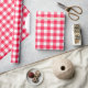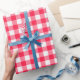 Everyday gingham check patterned wrap ideal for birthdays or other occasions. Upgrade to the linen or gloss and use as a draw liner to update old furniture. Wrapping paper in a red and white. Designed by Sarah Trett.