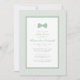 The classic combination of sage green gingham and a bow tie make a perfect baby shower invitation to celebrate a little gentleman on the way. Text can be edited to work for a sip and see, a baptism or a birthday party. The back is a coordinating sage green with white dots to match the bow tie.