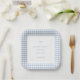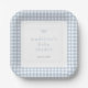 Gingham Simple Bow Dusty Blue Boys Baby Shower Paper Plate