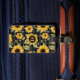 The striking sunflower pattern stands out beautifully against a black and grey gingham backdrop