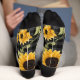 The striking sunflower pattern stands out beautifully against a black and grey gingham backdrop