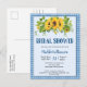 Gingham Sunflowers Rustic Bridal Shower Invitation - Our rustic, bridal shower invitation features bright, watercolor sunflowers with classic blue and white gingham. Postcard is part of a collection.