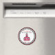A magnet for teachers featuring the logo of The Pink Schoolhouse inside a circle shaped black gingham frame with red trim. Black and red text reads "Third Grade Teachers have class."