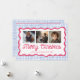 Gingham Wavy Pink Blue Christmas Custom 3 Photo Holiday Card