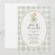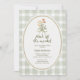 The invitation is adorned with a delicate watercolor hand-drawn oval frame with a green bow, offering an elegant and serene border that encapsulates your bridal shower details. This frame is set against a charming green gingham background, evoking the timeless appeal of cosy cottage style.