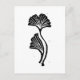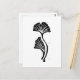 Minimalistic lino print of a vertical gingko leaf in black and white.