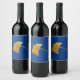 Blue wine bottle label with yellow ginkgo biloba leaf design