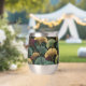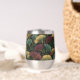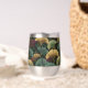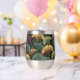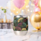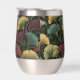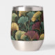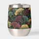 Ginkgo Leaf Pattern Teal Burgundy Design. This wine tumbler features the popular ginkgo leaf motif in rich jewel tones of teal, burgundy and gold on an off-black background. A luxurious design with a dark, moody vintage feel.