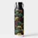 Ginkgo Leaf Pattern Teal Burgundy Design. This water bottle features the popular ginkgo leaf motif in rich jewel tones of teal, burgundy and gold on an off-black background. A luxurious design with a dark, moody vintage feel.