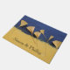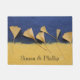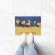 photo of yellow autumn ginkgo leaves on blue and yellow paper