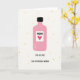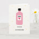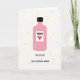 This card features a stylised rose-pink bottle with a black cap, centred on a creamy off-white background, giving it an easy, modern look. On the bottle’s front, a white label shows the word “MOM” in large letters above a bright red heart ❤️, like a little toast to someone adored. Beneath the heart, the phrase “YOU ARE ONE GIN-SPIRATIONAL WOMAN” appears in dark lettering, arranged neatly across the lower part of the label for a cheeky, affectionate wink. The bottle’s edges look slightly uneven and softly textured, as if drawn with a gentle chalky finish that adds a cosy, close-to-home feel. Around the bottle, scattered yellow dots 🌼 drift in an uneven pattern, like confetti floating through the open space. The simple layout leaves plenty of breathing room, making the central image feel like a sweet gift set on a tabletop. The yellow dots vary in size and sit mostly to the sides and upper area, framing the bottle without crowding it.
