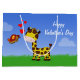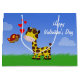 A cute and colourful Valentine's Day illustration featuring a giraffe and a butterfly with red hearts and Valentine's greeting.